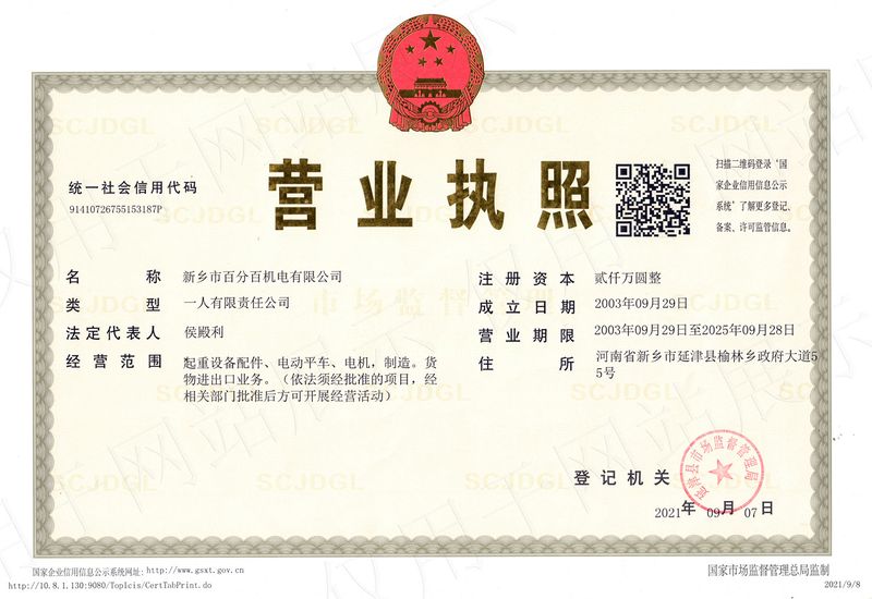 新鄉(xiāng)市百分百機(jī)電有限公司
