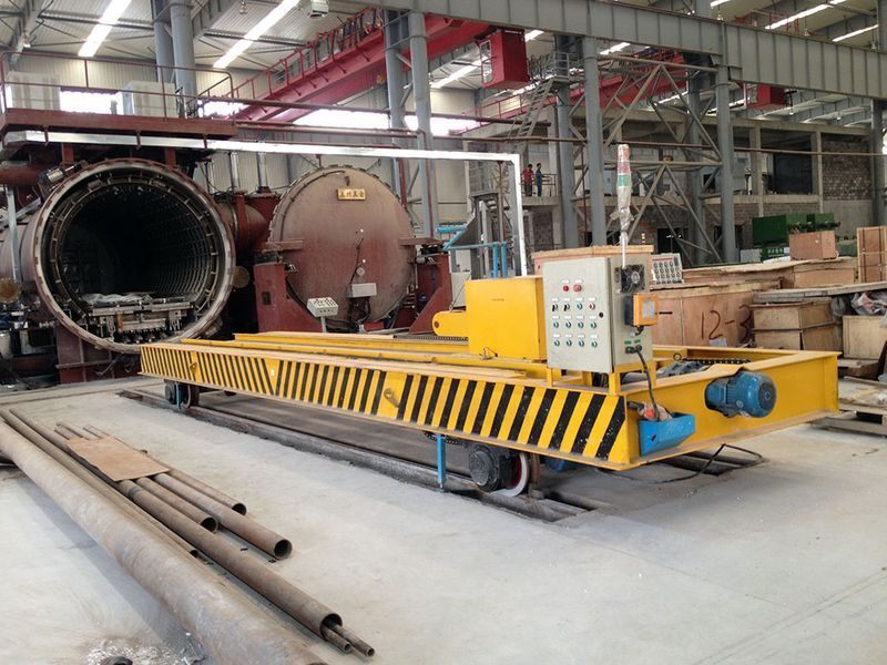 河南百分百公司定制型真空爐擺渡軌道地平車主要由上、中、下三層車身組成。下層地平車為長距離地軌運行,中層小車?yán)脻L輪或者絲杠傳動與真空爐內(nèi)軌道連接。上層停車位齒輪齒條傳動可與真空爐內(nèi)的料車自動連接,將料車推入或者拉出真空爐。變頻裝置應(yīng)用于第二層軌道與真空爐內(nèi)軌道連接時平穩(wěn)無沖擊力,運行安全可靠。